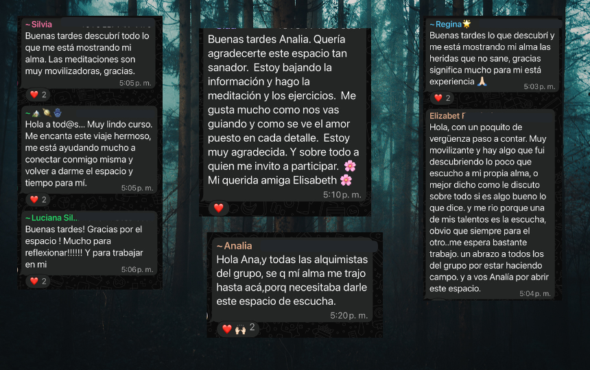 Cada contenido quedará disponible en el grupo por una semana más y podrás retomarlo cuando puedas, pero te sugiero que sigas el ritmo diario para vivir el proceso completo y en sintonía con el grupo.